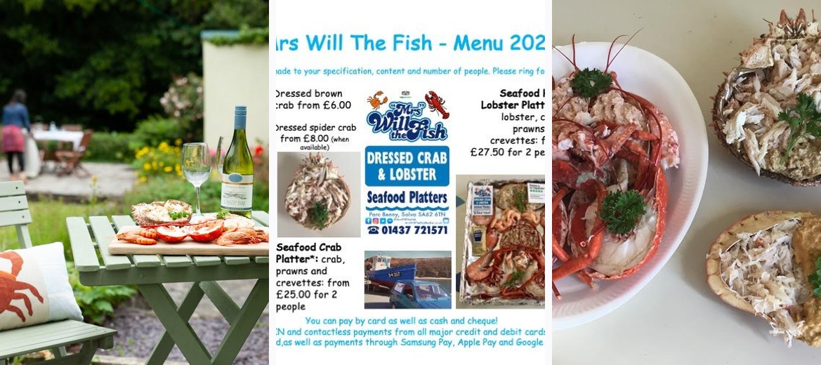 Mrs Will the Fish offers a variety of delicious seafood, including beautifully dressed brown and spider crabs, as well as seafood platters featuring half and whole lobsters.